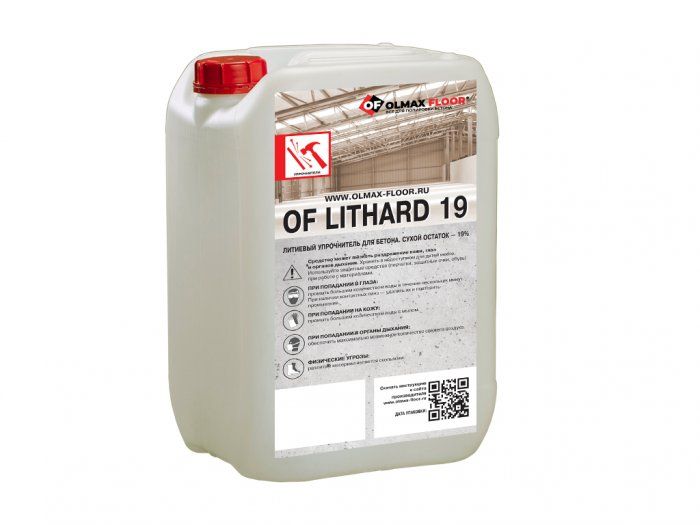 OF LitHard 19 (ЛитХард 19), сух.ост 19% – литиевый упрочнитель с высоким активным сухим остатком на водной основе, используемый для упрочнения, обеспыливания новых и существующих бетонных полов.